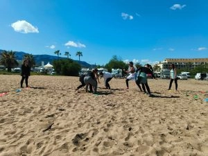 Dos horas de humor amarillo en la misma playa, con juegos dentro y fuera del mar